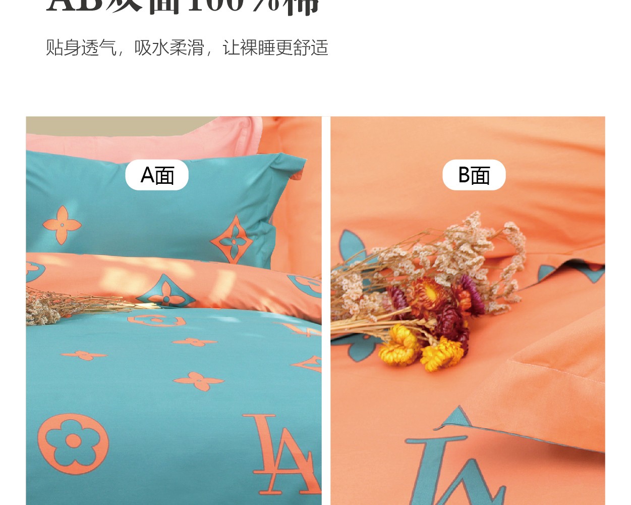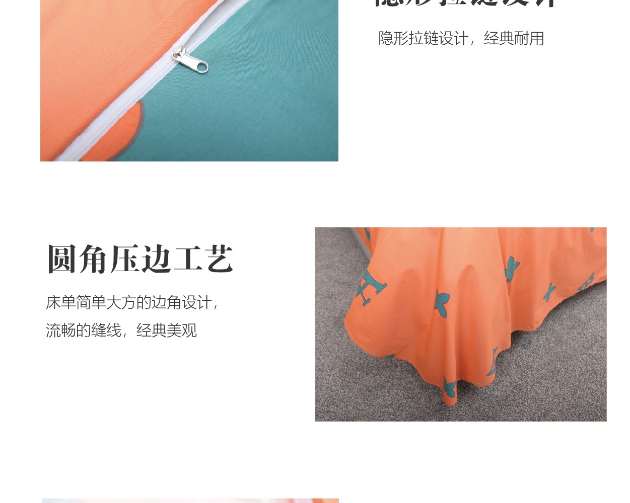 描述:环保活性印花染工艺,安全环保,色牢度高不易退色 100%纯棉面料,亲肤透气,柔软细腻,带给你舒适的睡眠体验