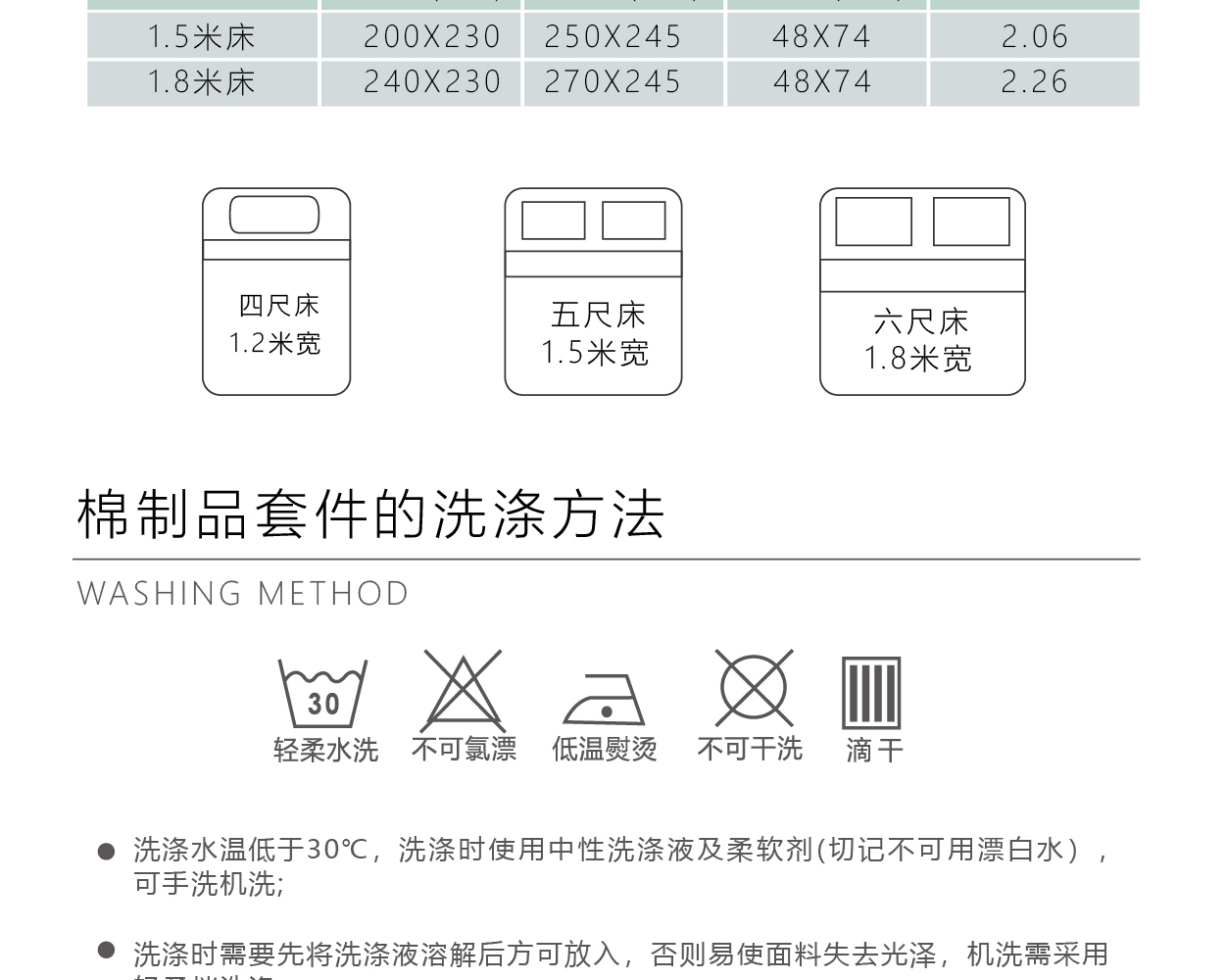 产品规格:200*230cm(1.5米床),240*220cm(1.8米床)