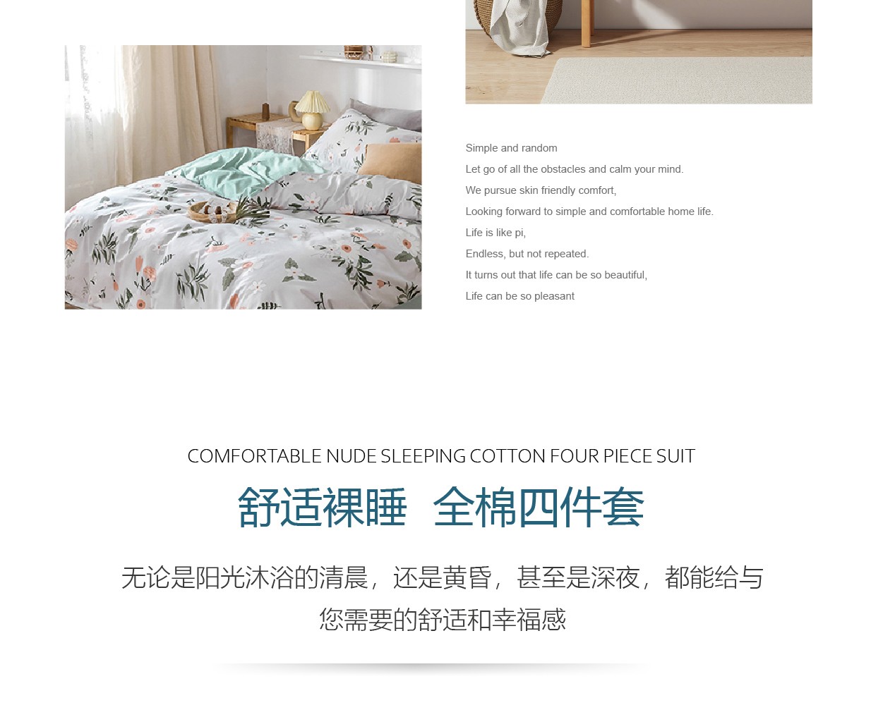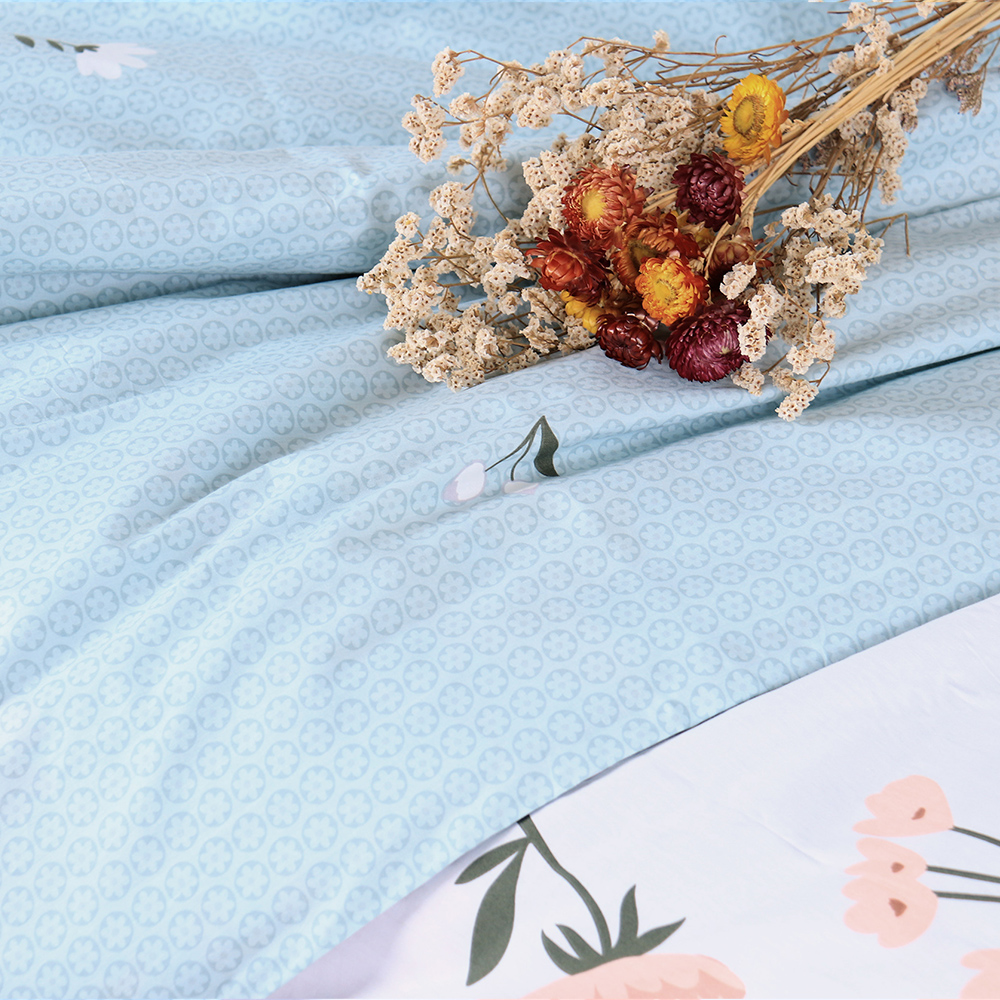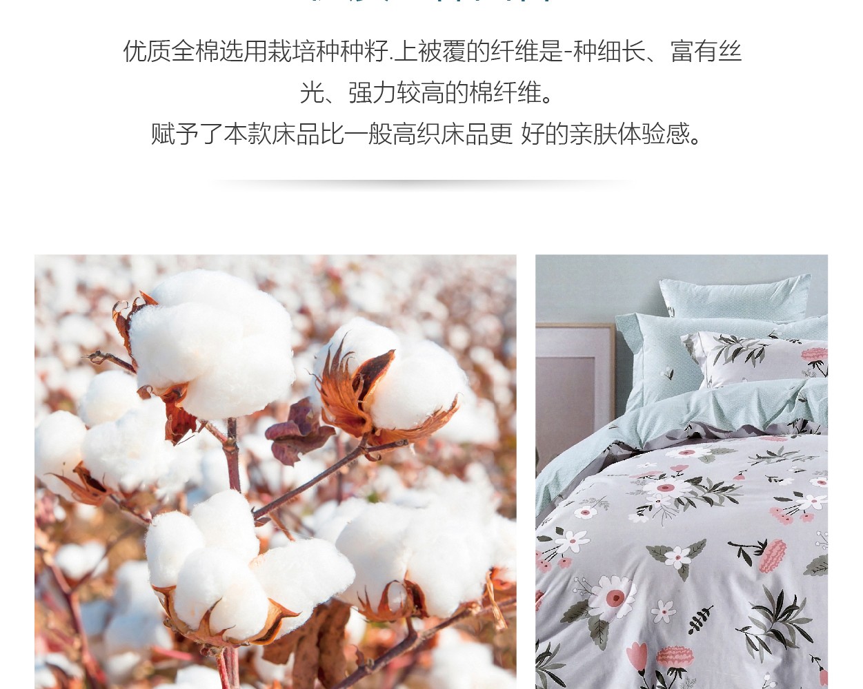描述:全棉面料,吸湿透气,滑爽亲肤,带给您舒适的睡眠体验 织造面料的每一根纤维 选取长度均大于30mm,精梳去除粗纤维,无任何断线起球。