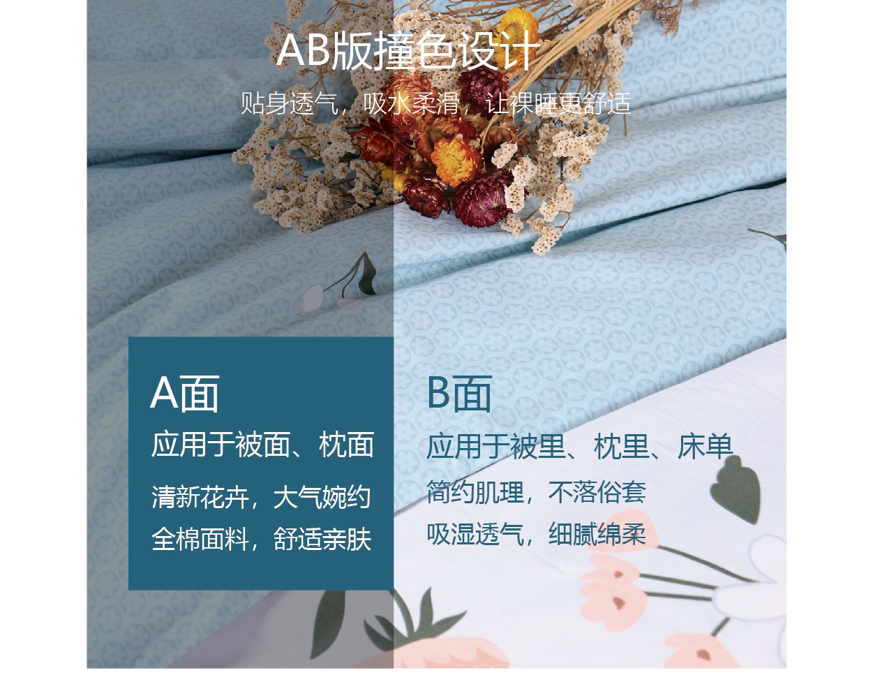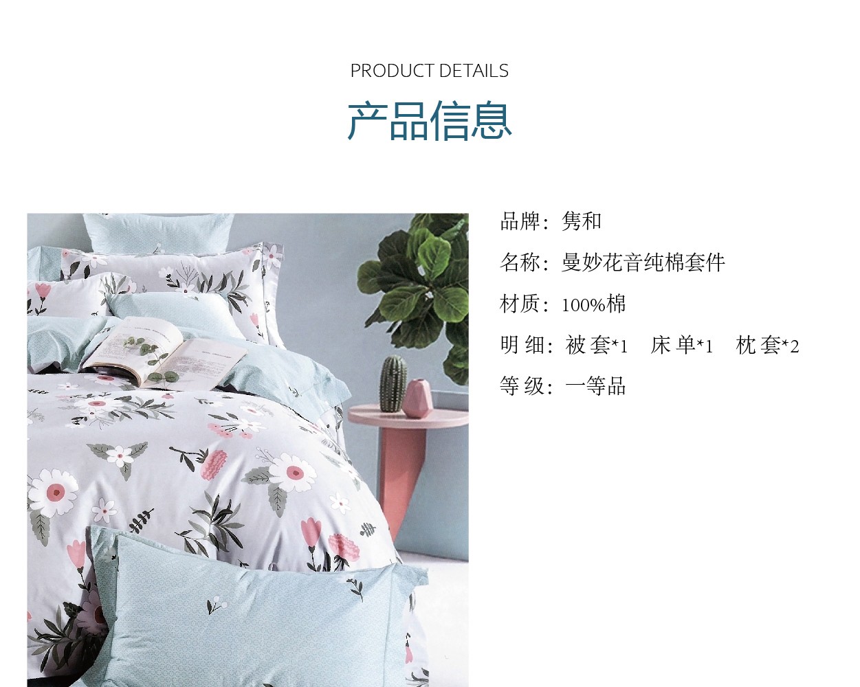 明细:被套*1,床单*1,枕套*2