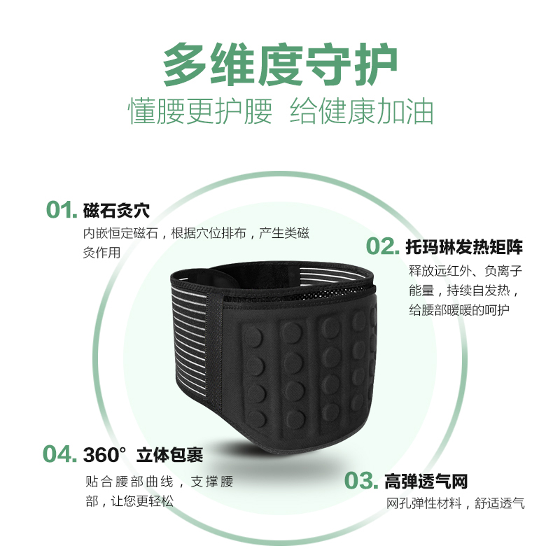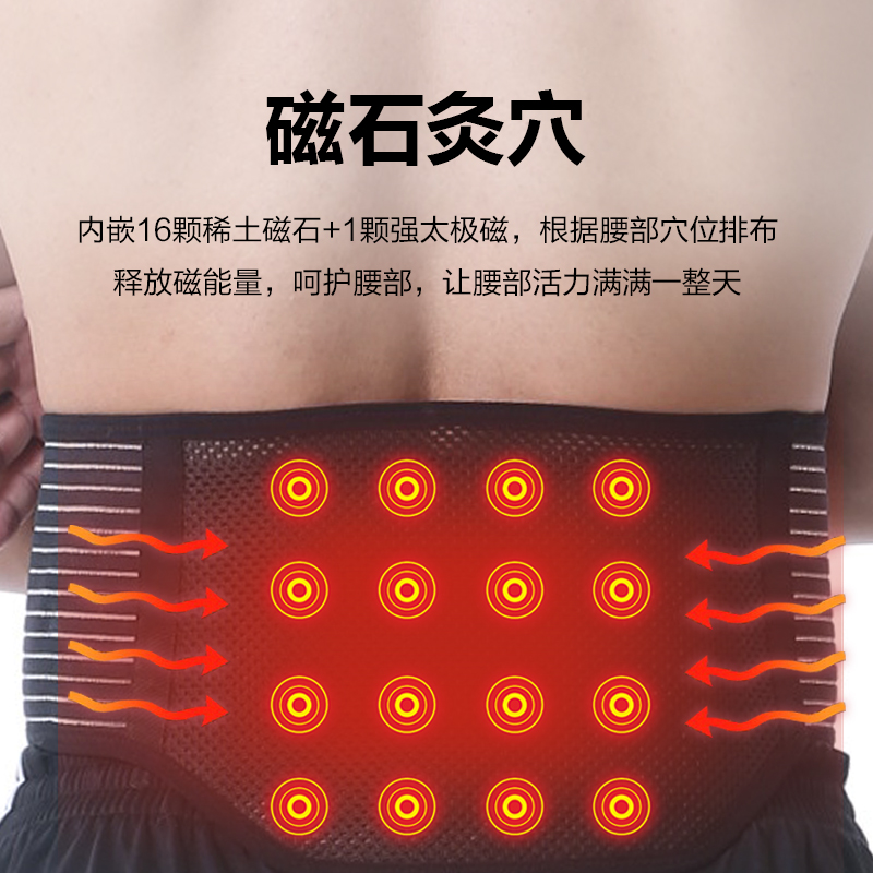 描述:16颗稀土磁石+1颗强太极磁作用于腰部,形成磁场包围圈,释放磁能量,独特点状矩阵设计,对应腰部穴位均匀发热,热量直达人体内部,呵护腰部,不惧寒冷。