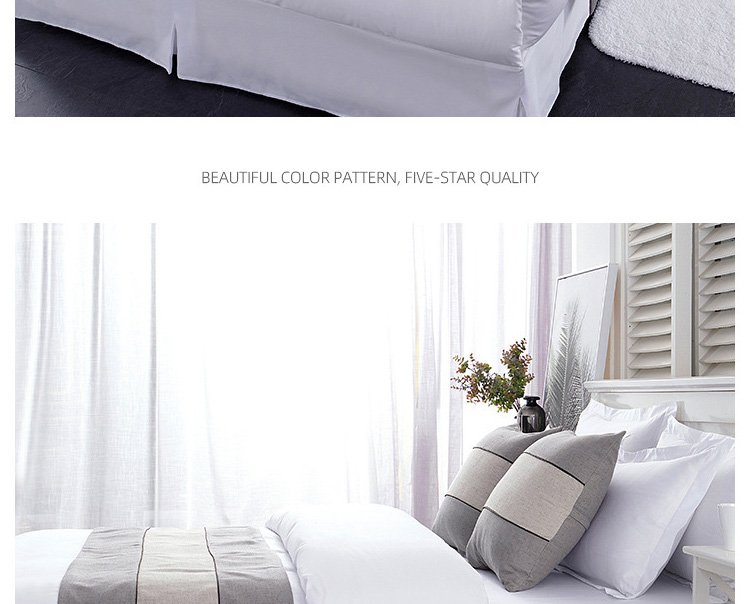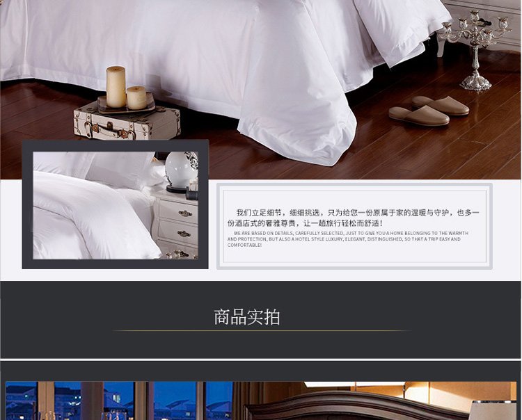 描述:本公司专业为客户提供各种酒店布草,多种款式、支持来图定制,均是全工艺一手品牌面料,细致考究的工艺,富裕每一个床品细腻如绸的柔软触感。目前全国合作酒店已达数百家。